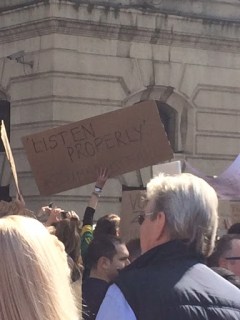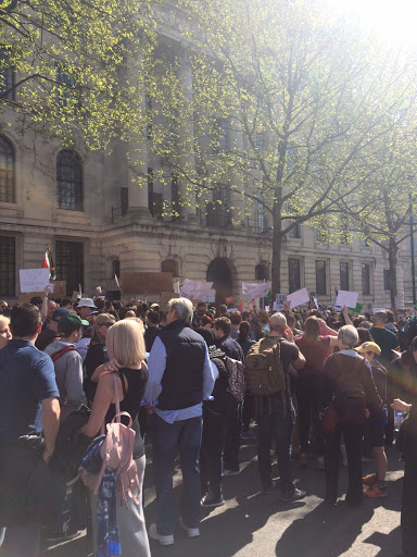Feeling compelled to be there I arrived in Trafalgar Square to glorious sunshine and much anticipation in the air. Meeting my friend Brent, flag in hand, we joined the hundreds collected on the pavement outside the building.