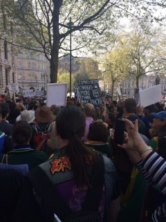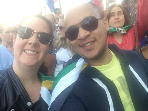 Unfortunately the speakers were hard to hear from where we were standing but what was loud and clear were the enthusiastic shouts of ‘Zuma Must Go’, ‘Viva’s’ for Mandela, Kathrada and Tambo and the various rounds of ‘Shosholoza’ punctuated with vuvuzelas. Most moving was the singing of the national anthem which gave me chills, the final lines being ever more appropriate; “Sounds the call to come together, and united we shall stand. Let us live and strive for freedom in South Africa our land!”