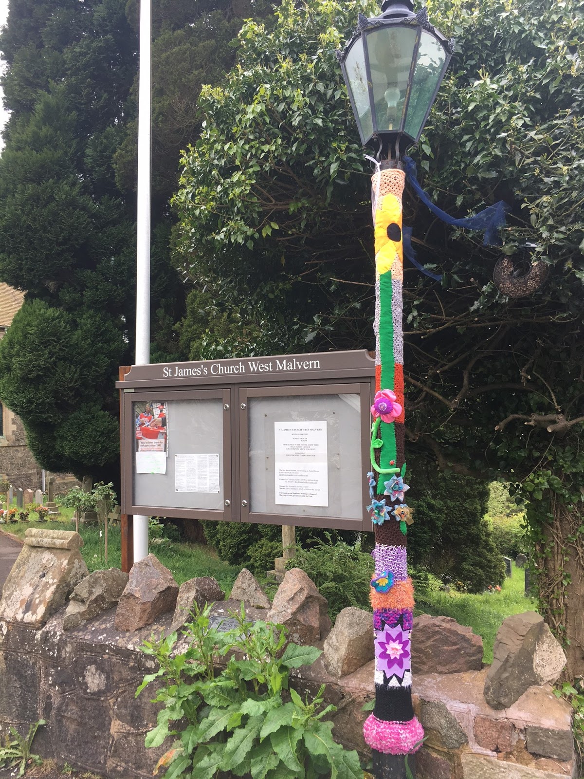 The outside of the church was an interesting site. A blue faced clock on the tower felt traditional, the widely spaced cow grate on the approaching driveway felt antiquated and the lamppost near the drive entrance covered in guerilla knitting was oddly hilarious.