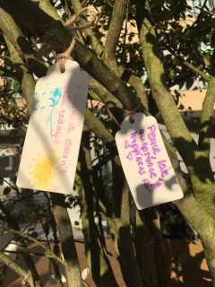 Upon closer inspection I found a Styrofoam cup wedged into a nook among the branches which was full of cardboard tags. Felt tip pens were also balanced on another branch below and people had been writing wishes and tying them to branches which fluttered about in the breeze. Feeling motivated by the fantastic atmosphere I added my own wish to the collection.