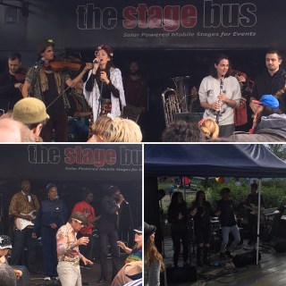 Making our way through the buildings leading up to the reservoir, the first sight we saw was the ‘main stage’ – a solar powered bus hosting the first of a few bands playing a variety of music. This started with a chilled yet groovy reggae vibe from the group playing when we arrived; followed by a foot stomping folk flavoured band with added strings which livened up the crowd as we were caught in a brief downpour.